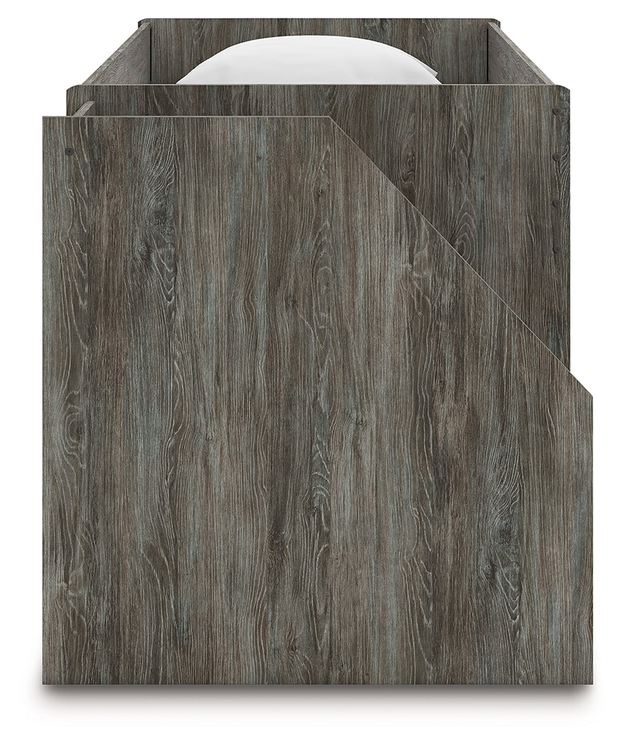 - Includes panel headboard, footboard, under bed storage with side rail and roll slats