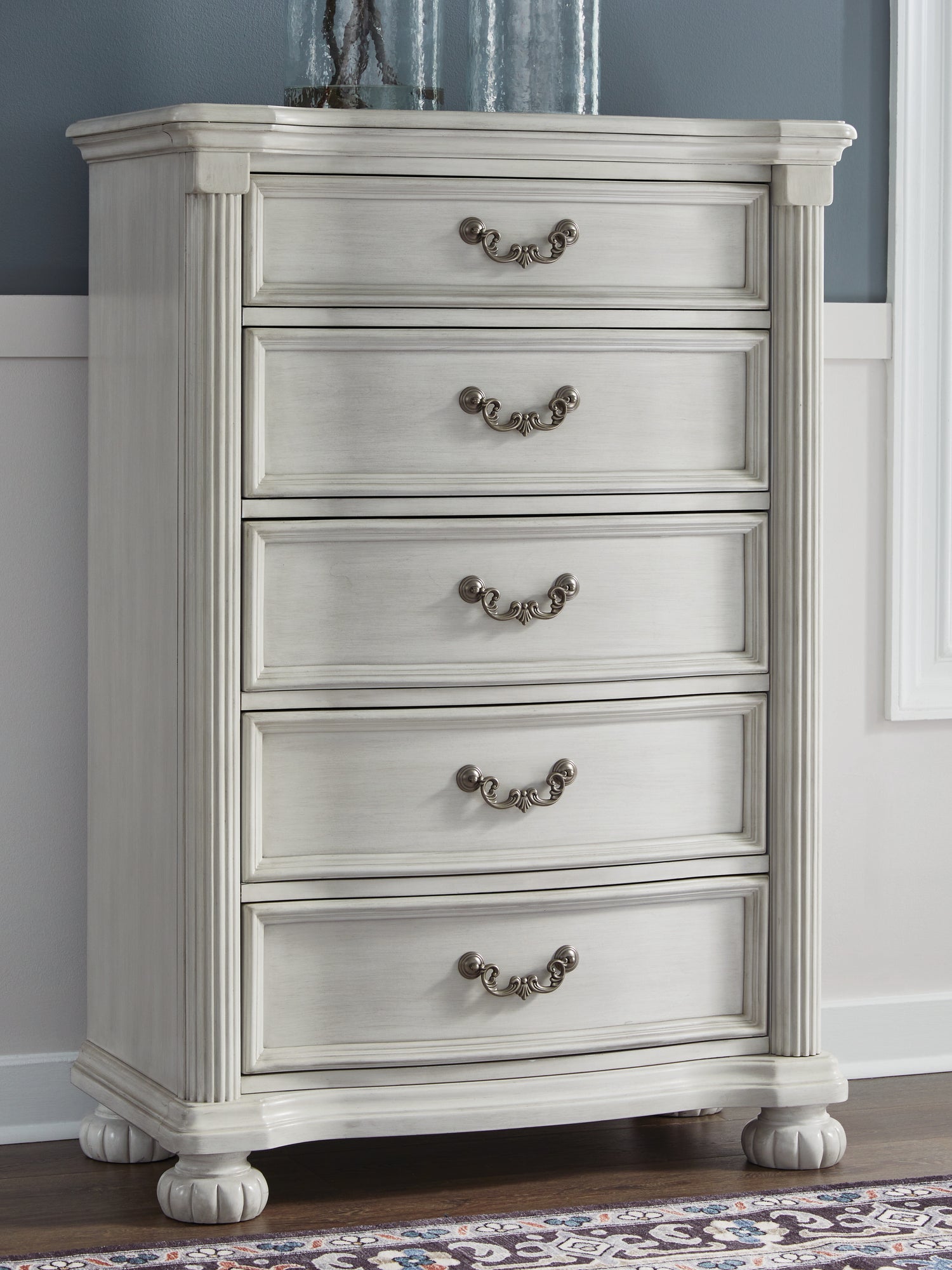 Montelaine Bedroom - Dresser / Antique White is backordered and will ship as soon as it is back in stock.